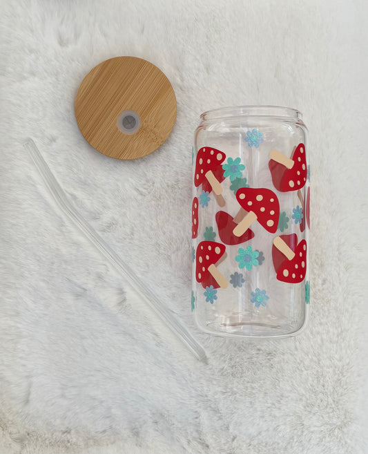 16oz Glass Cup - Mushroom and Flowers | Stylish Drinkware for Every Occasion