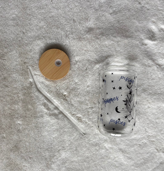 Glass Can Cup 16oz - Pisces