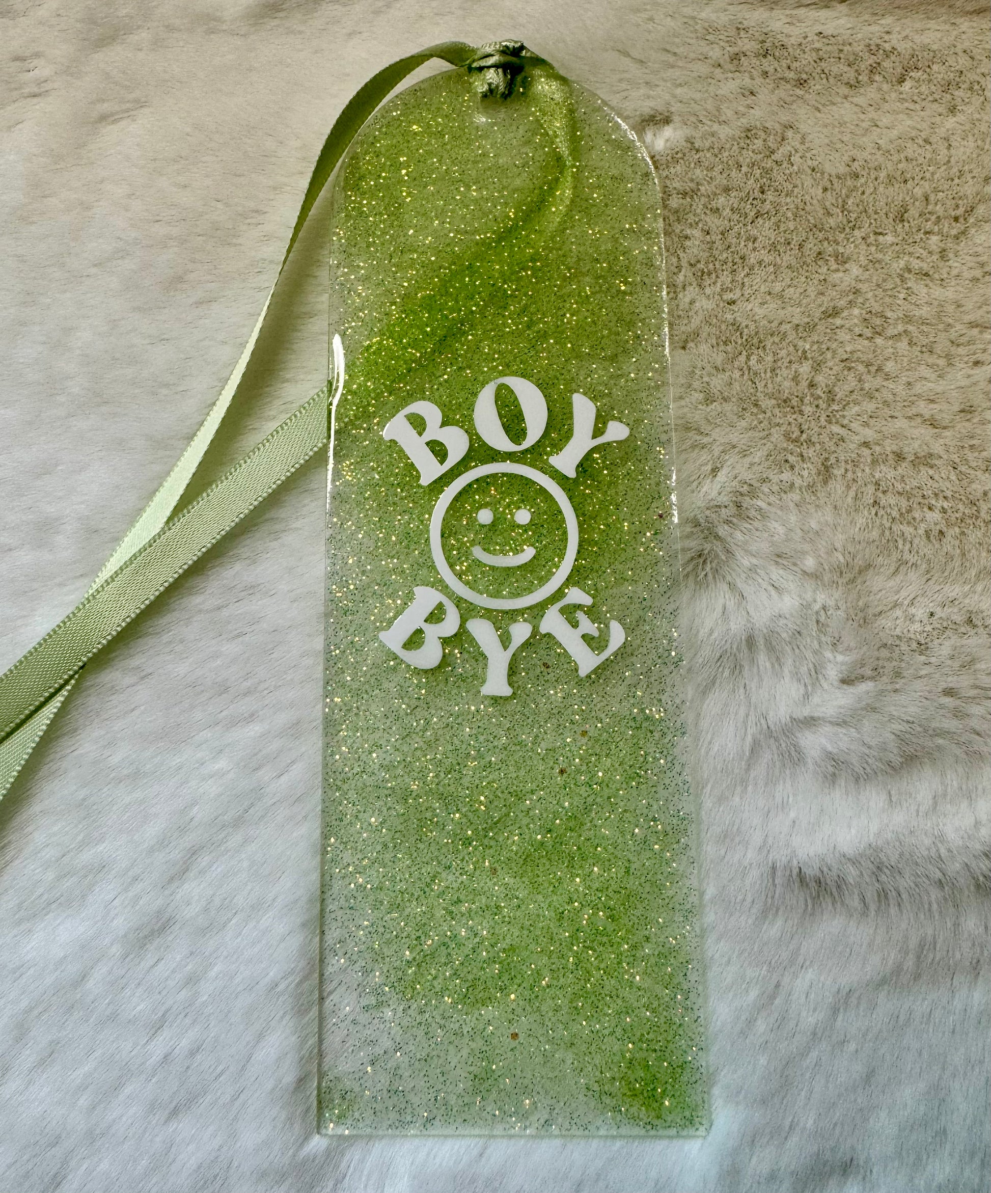 Each bookmark has a very thin resin coating to protect vinyl. Ribbon and glitter colours may be random, please let us know when ordering if there is a specific colour you’d like and we will do our best to accommodate!