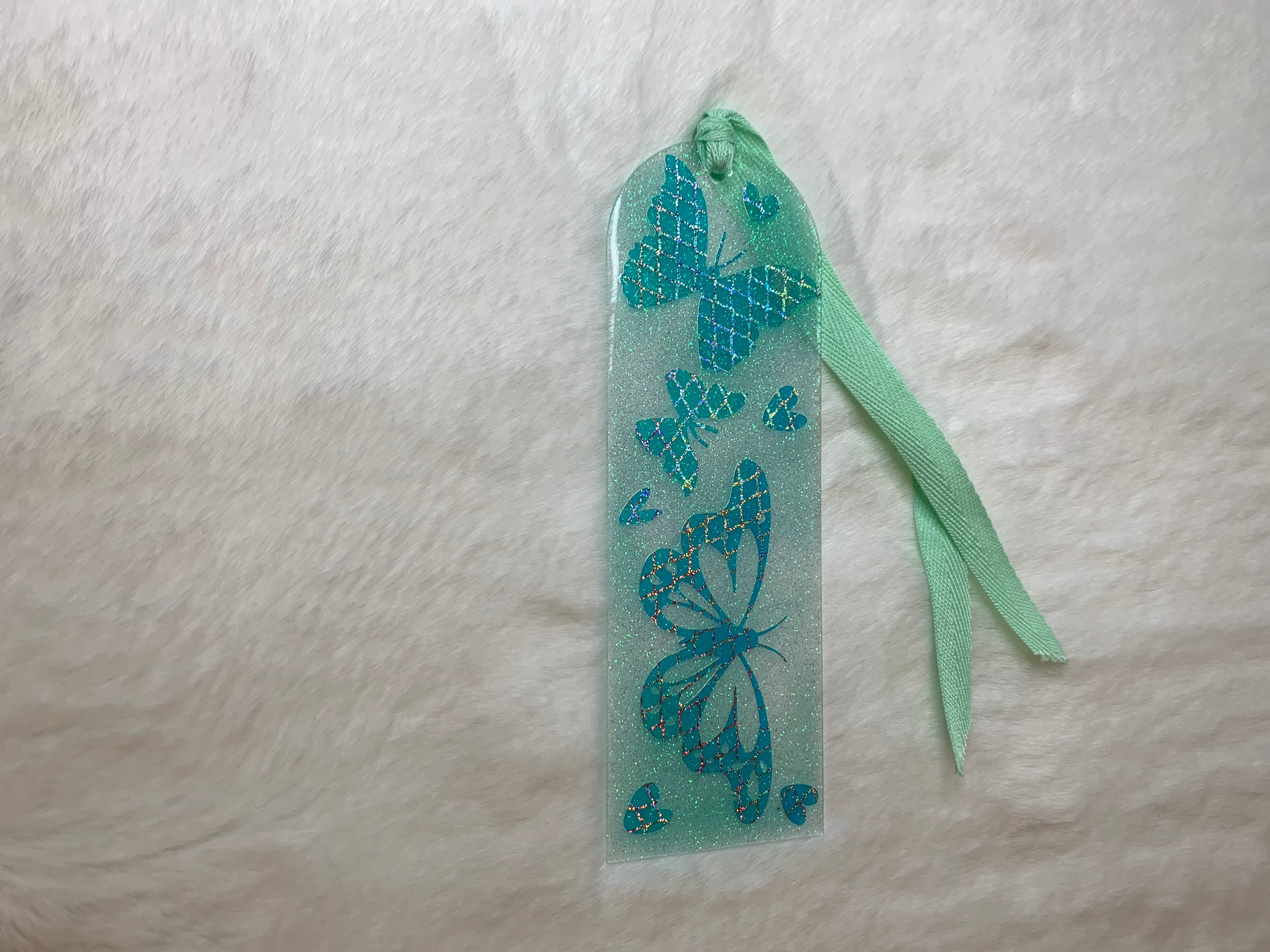 Each bookmark has a very thin resin coating to protect vinyl. Ribbon and glitter colours may be random, please let us know when ordering if there is a specific colour you’d like and we will do our best to accommodate!