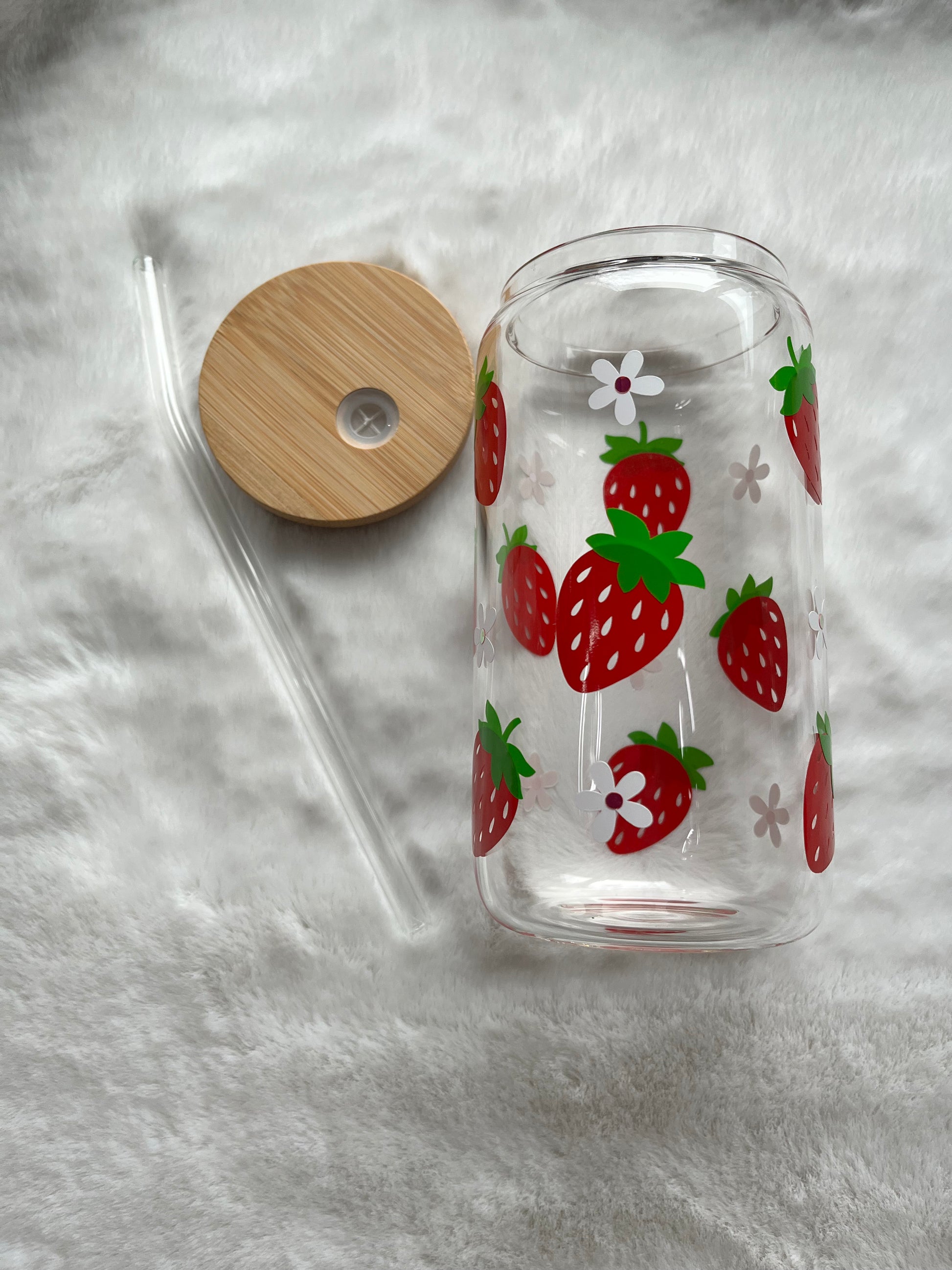 This stylish 16oz glass can cup is the perfect companion for your favourite beverage. Featuring a glass straw and bamboo lid, this high quality cup will make sipping drinks a breeze!