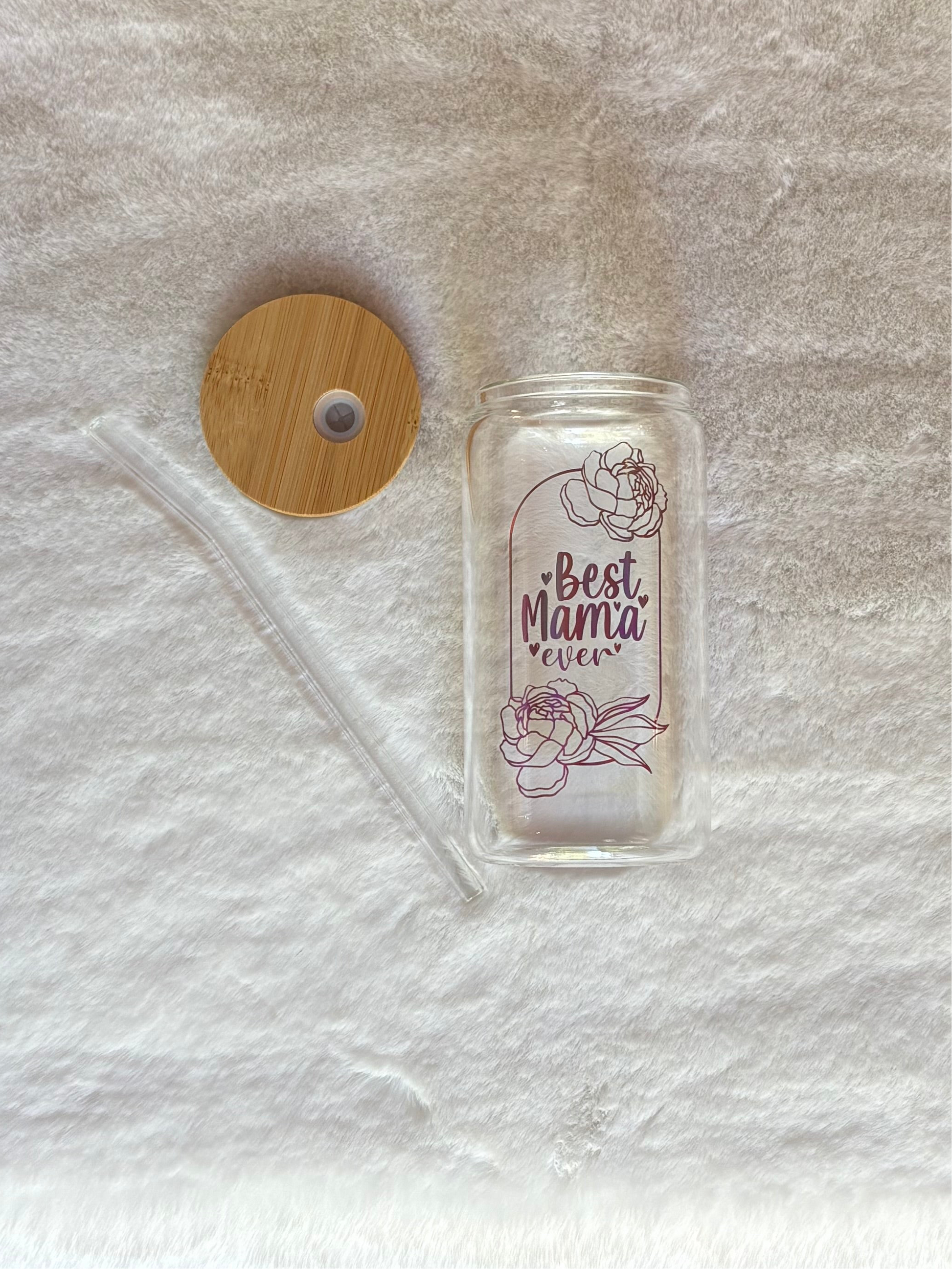 This stylish 16oz glass can cup is the perfect companion for your favourite beverage. Featuring a glass straw and bamboo lid, this high quality cup will make sipping drinks a breeze!