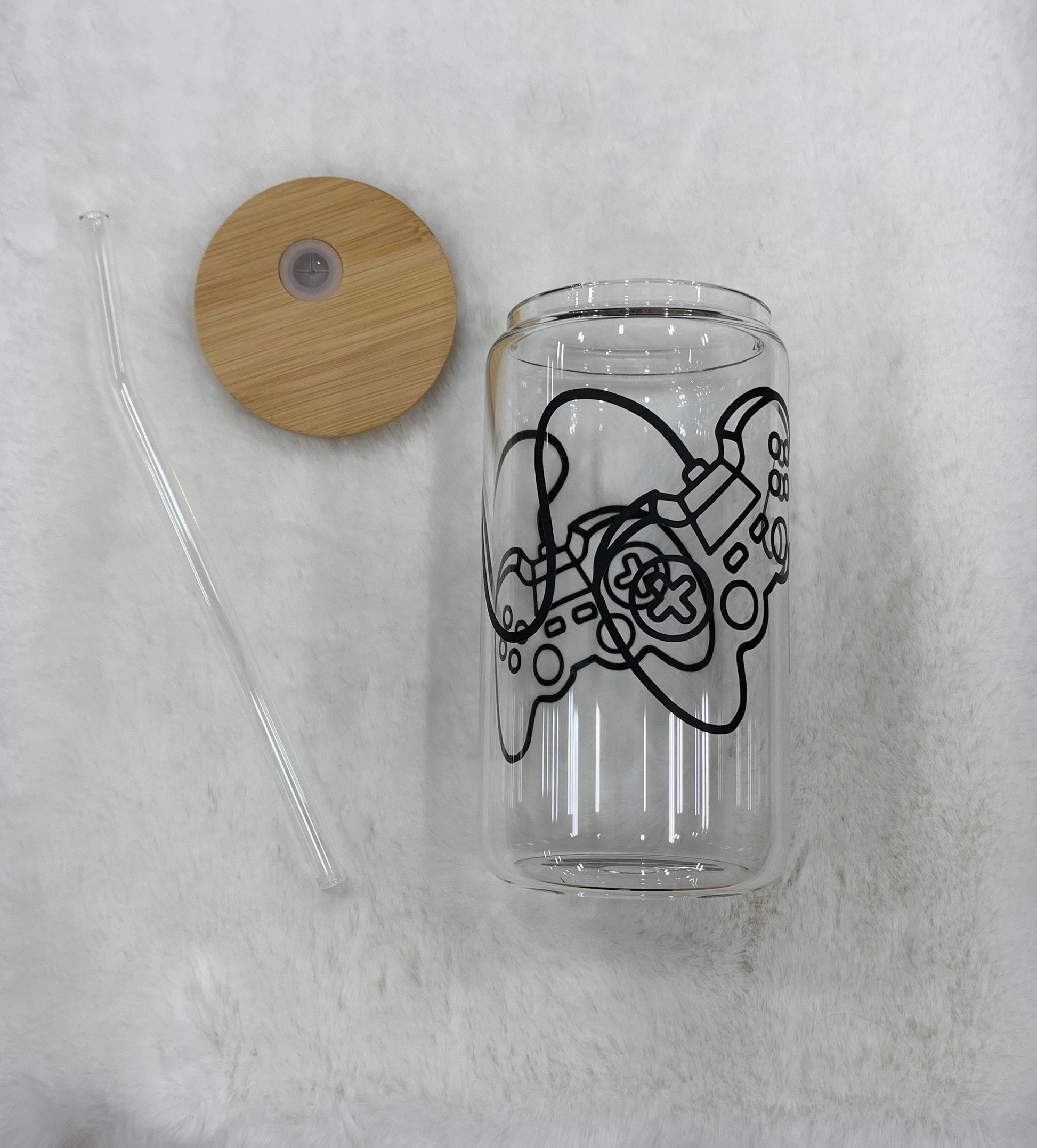 This stylish 16oz glass can cup is the perfect companion for your favourite beverage. Featuring a glass straw and bamboo lid, this high quality cup will make sipping drinks a breeze!