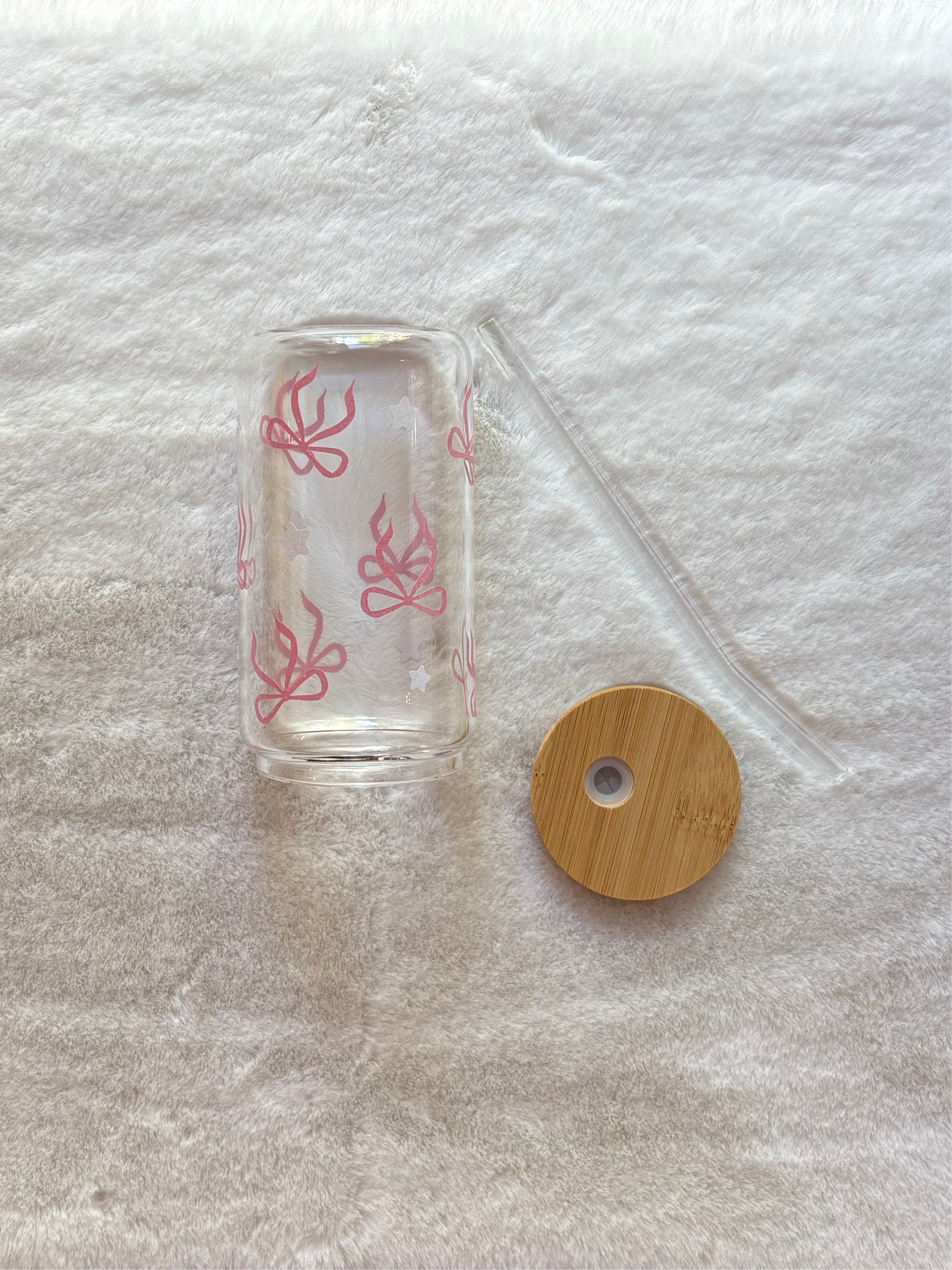 Glass Can Cup 16oz - Coquette Bows and Stars