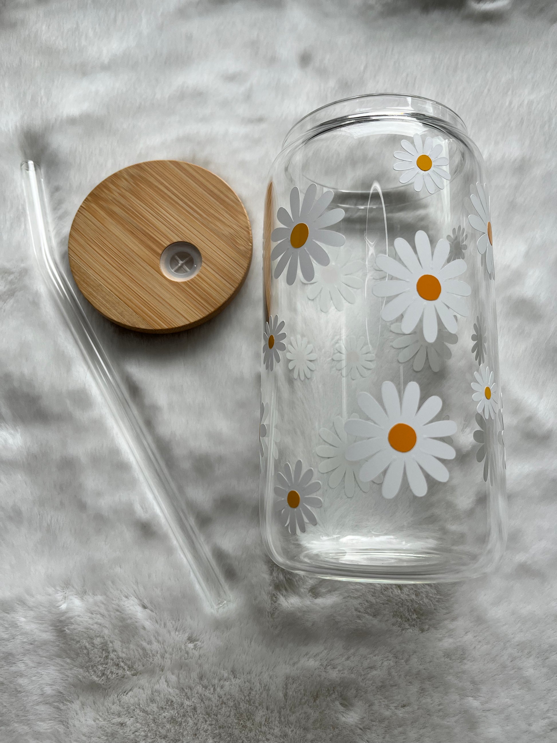 This stylish 16oz glass can cup is the perfect companion for your favourite beverage. Featuring a glass straw and bamboo lid, this high quality cup will make sipping drinks a breeze!