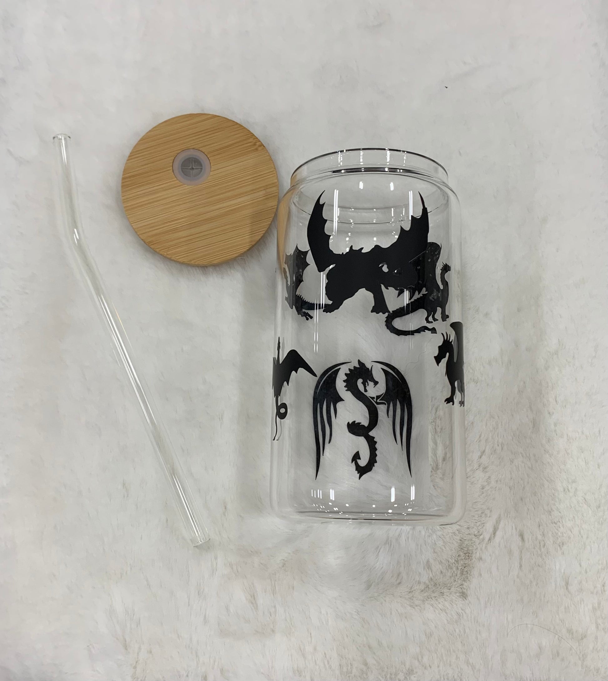 This stylish 16oz glass can cup is the perfect companion for your favourite beverage. Featuring a glass straw and bamboo lid, this high quality cup will make sipping drinks a breeze!