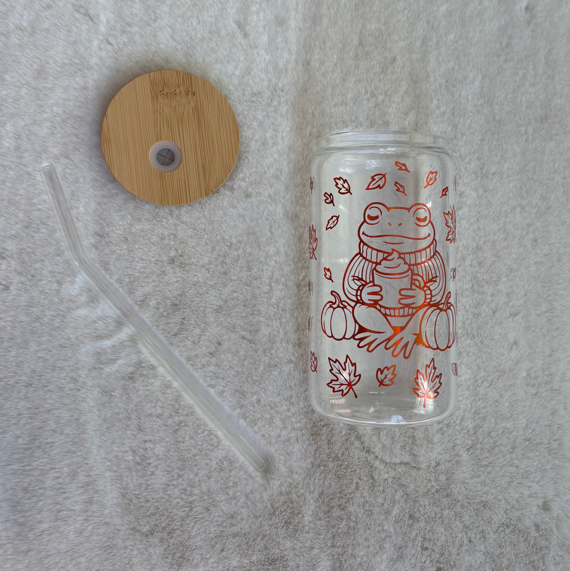 This stylish 16oz glass can cup is the perfect companion for your favourite beverage. Featuring a glass straw and bamboo lid, this high quality cup will make sipping drinks a breeze!