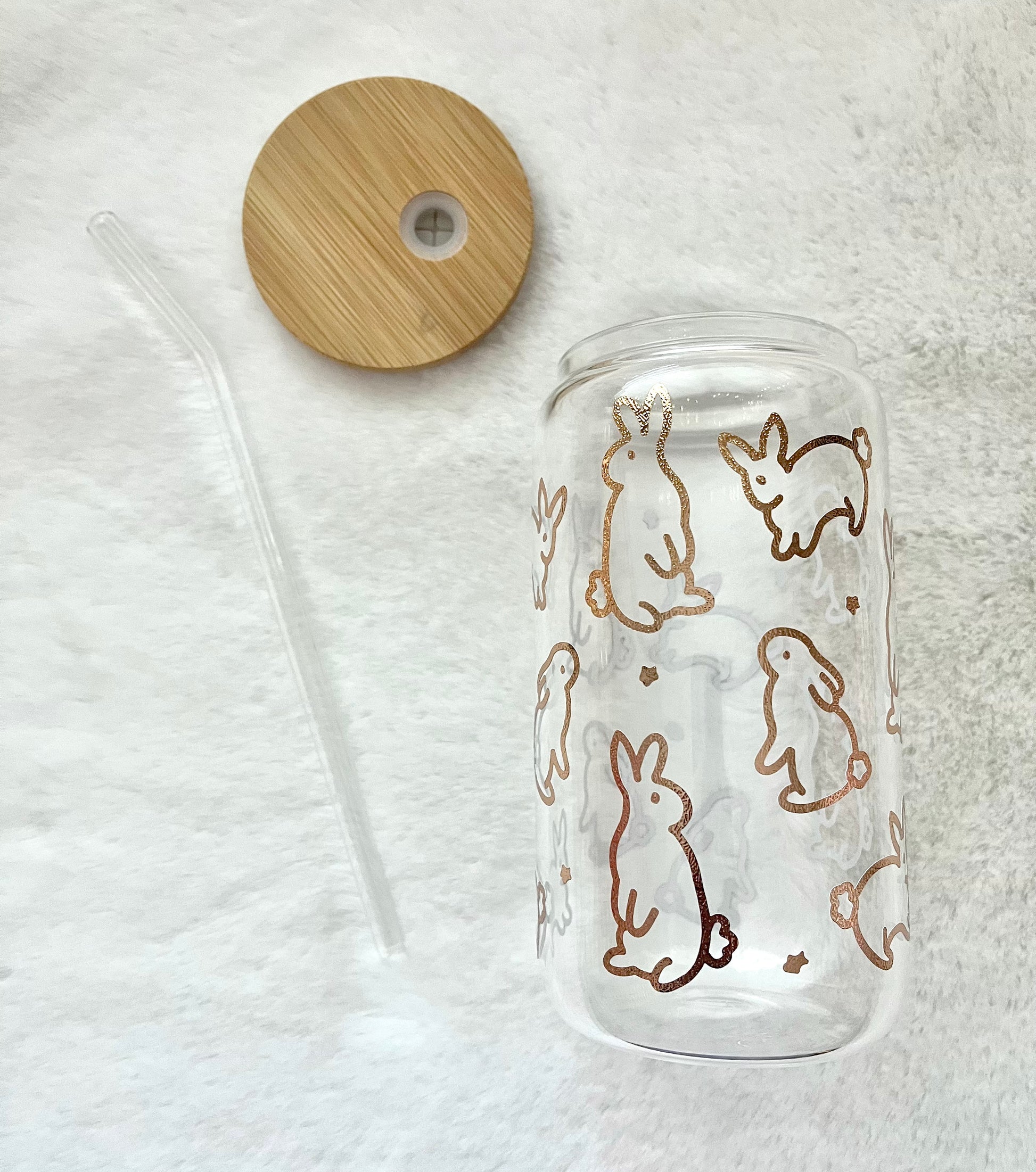 This stylish 16oz glass can cup is the perfect companion for your favourite beverage. Featuring a glass straw and bamboo lid, this high quality cup will make sipping drinks a breeze!