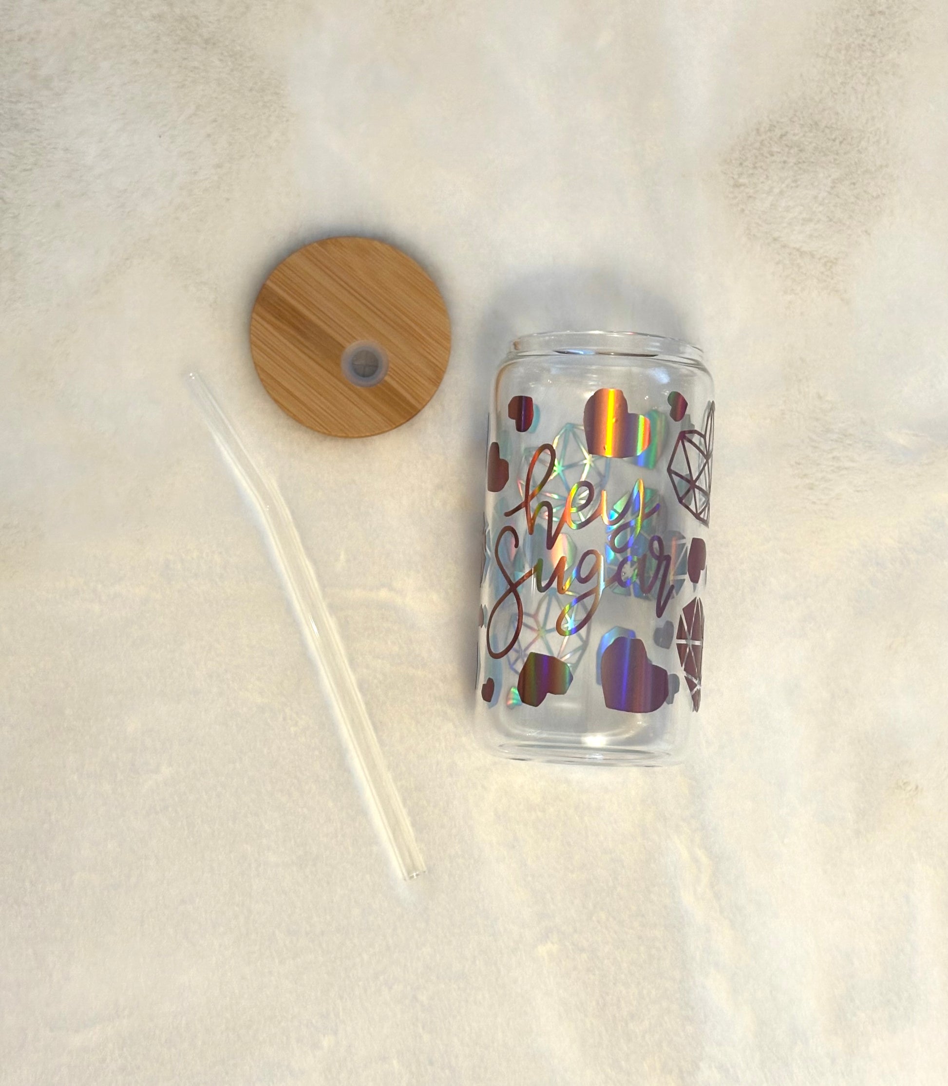 Glass Can Cup 16oz - “Hey Sugar”