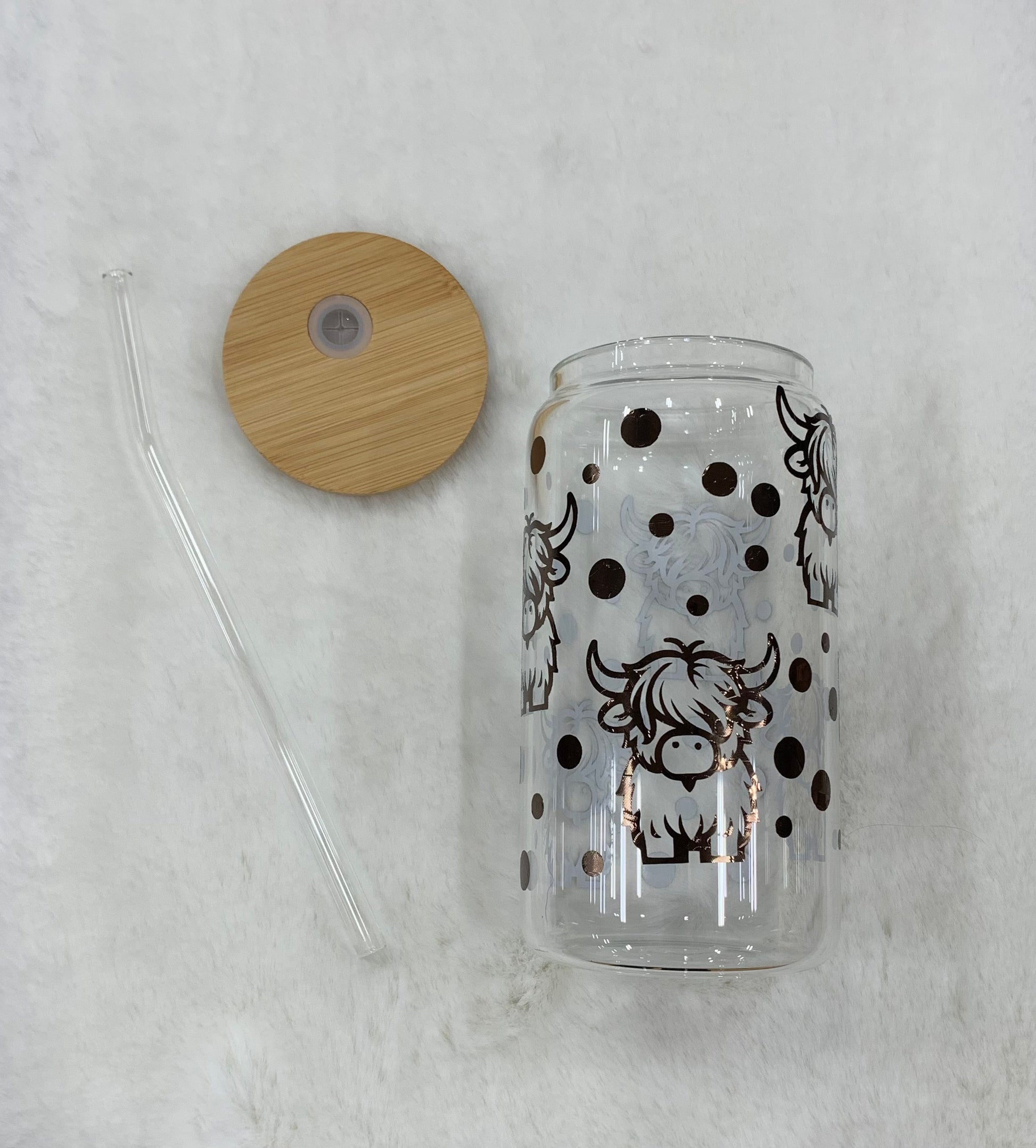 This stylish 16oz glass can cup is the perfect companion for your favourite beverage. Featuring a glass straw and bamboo lid, this high quality cup will make sipping drinks a breeze!