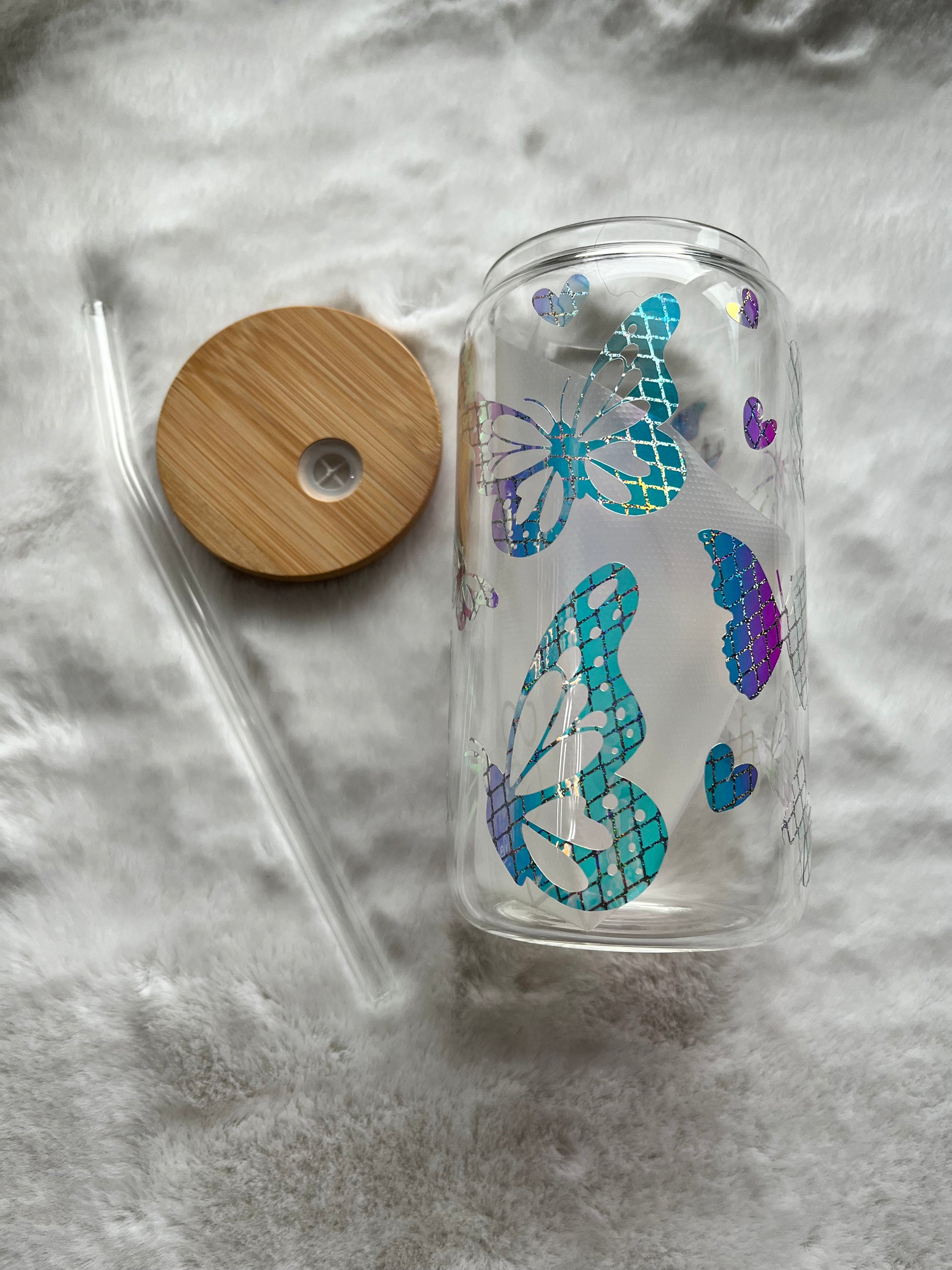 This stylish 16oz glass can cup is the perfect companion for your favourite beverage. Featuring a glass straw and bamboo lid, this high quality cup will make sipping drinks a breeze!