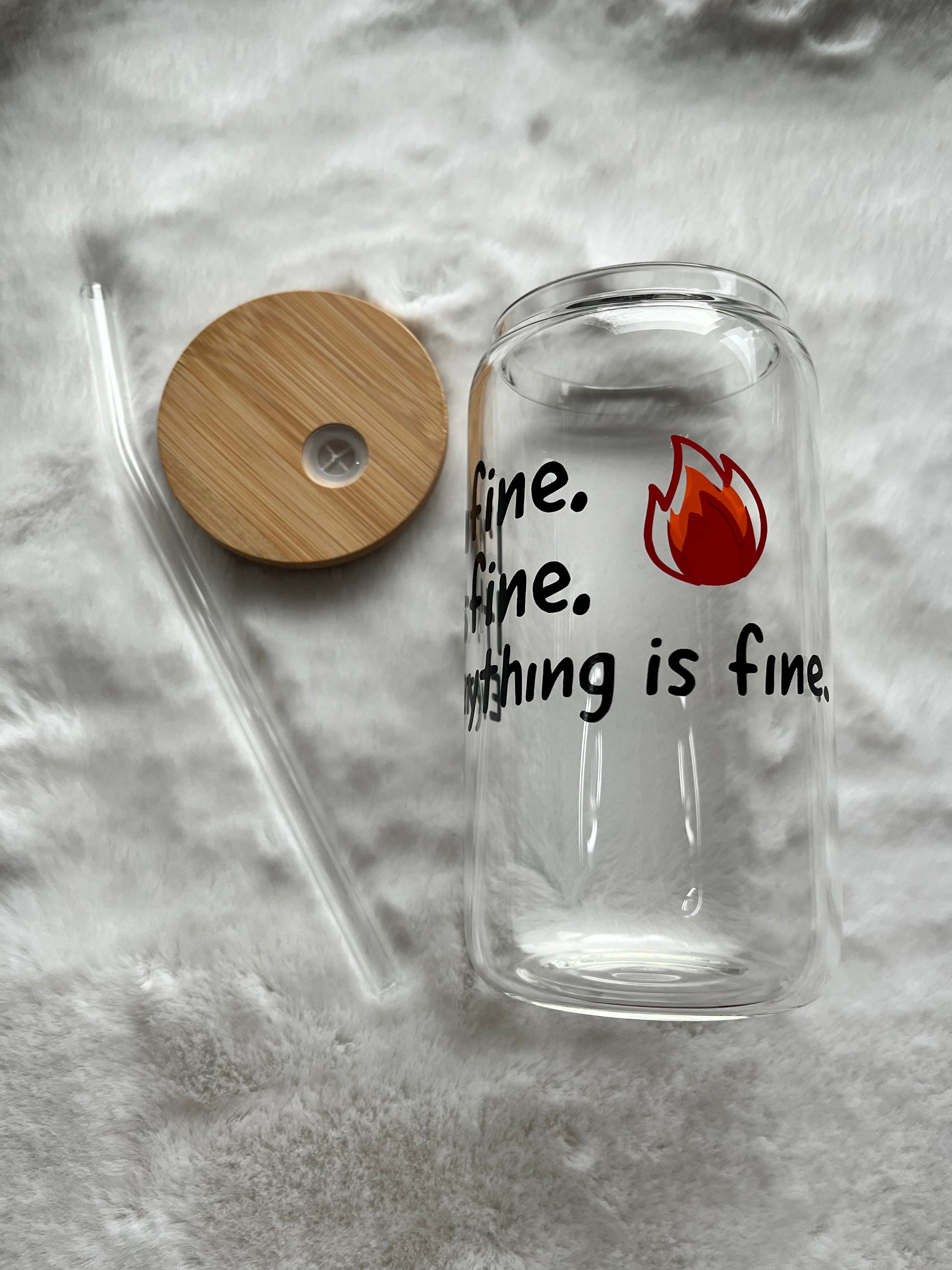 This stylish 16oz glass can cup is the perfect companion for your favourite beverage. Featuring a glass straw and bamboo lid, this high quality cup will make sipping drinks a breeze!