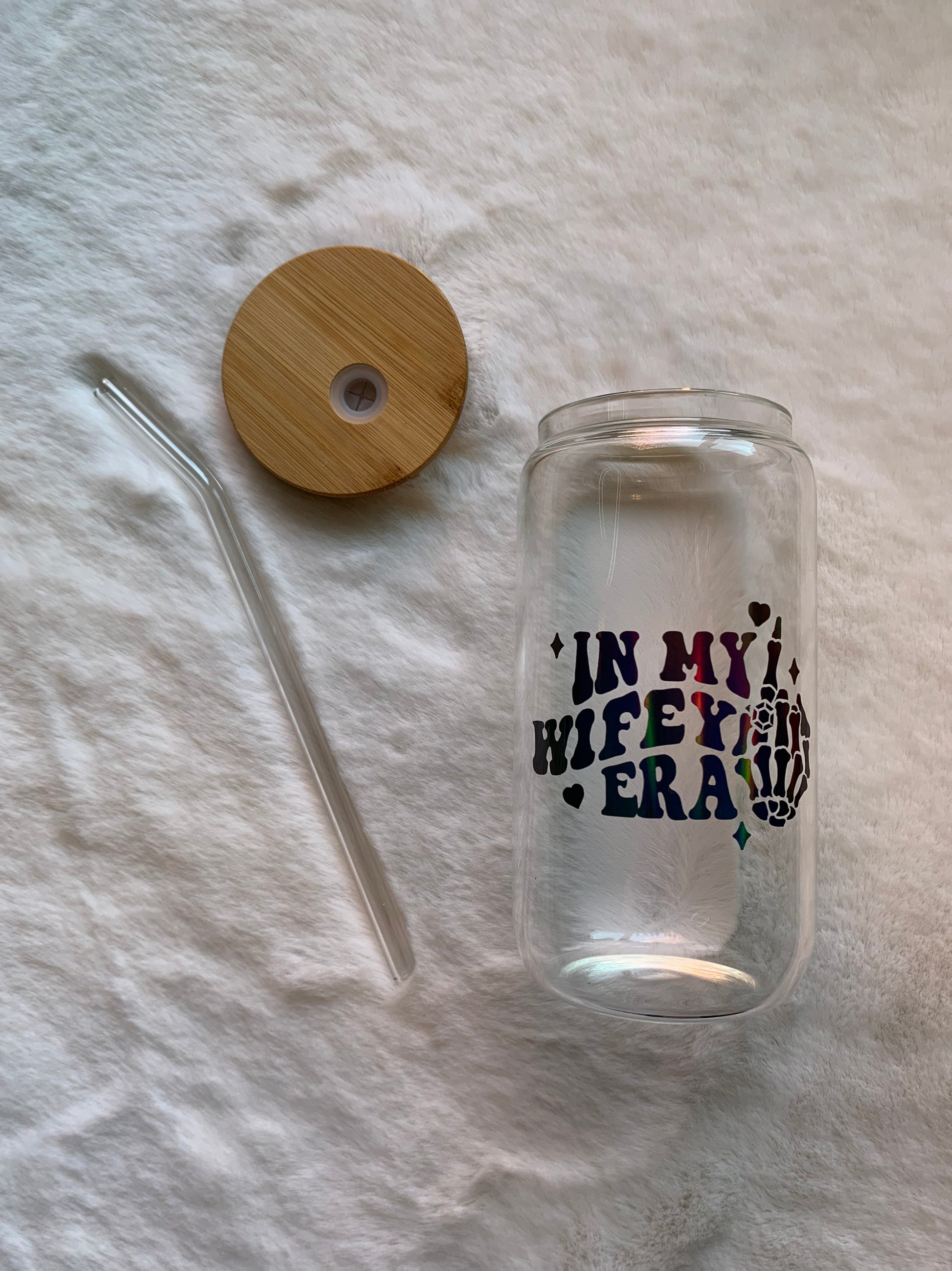 This stylish 16oz glass can cup is the perfect companion for your favourite beverage. Featuring a glass straw and bamboo lid, this high quality cup will make sipping drinks a breeze!