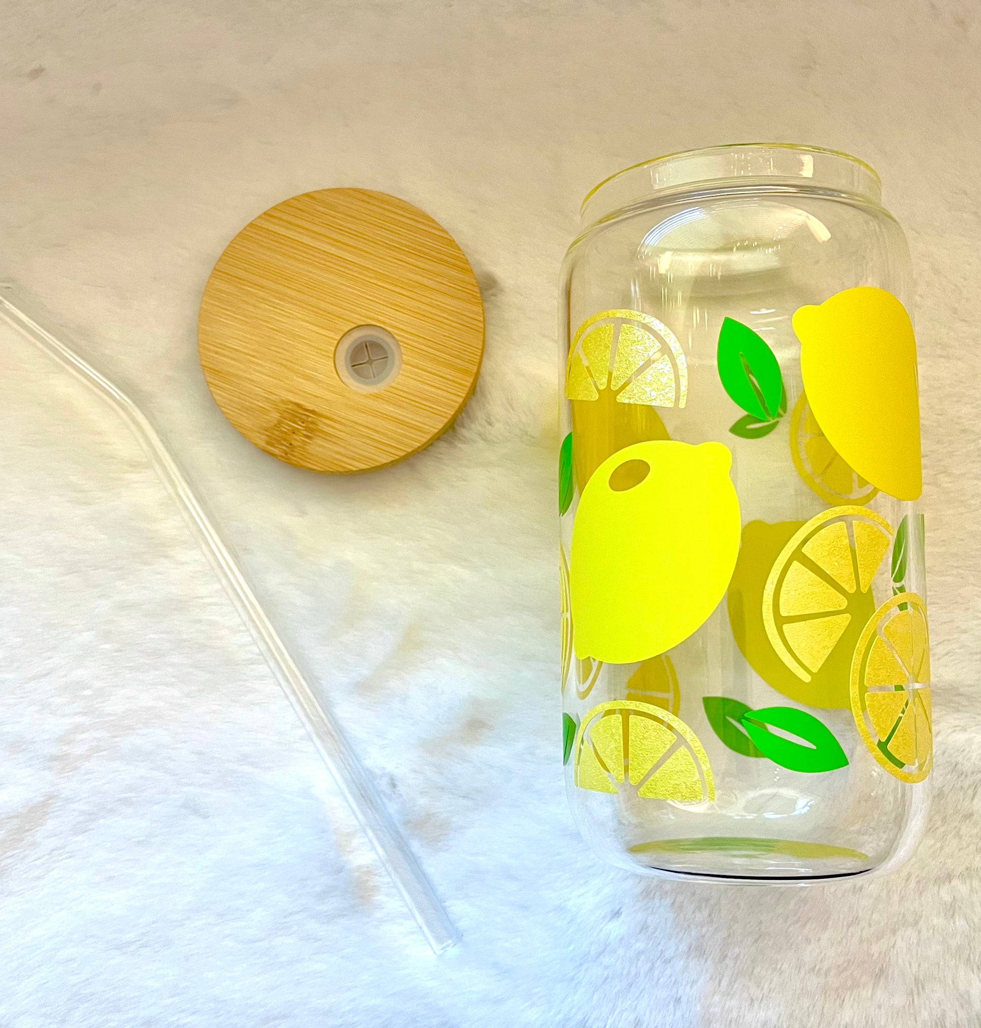 Glass Can Cup 16oz - Lemon Sparkle