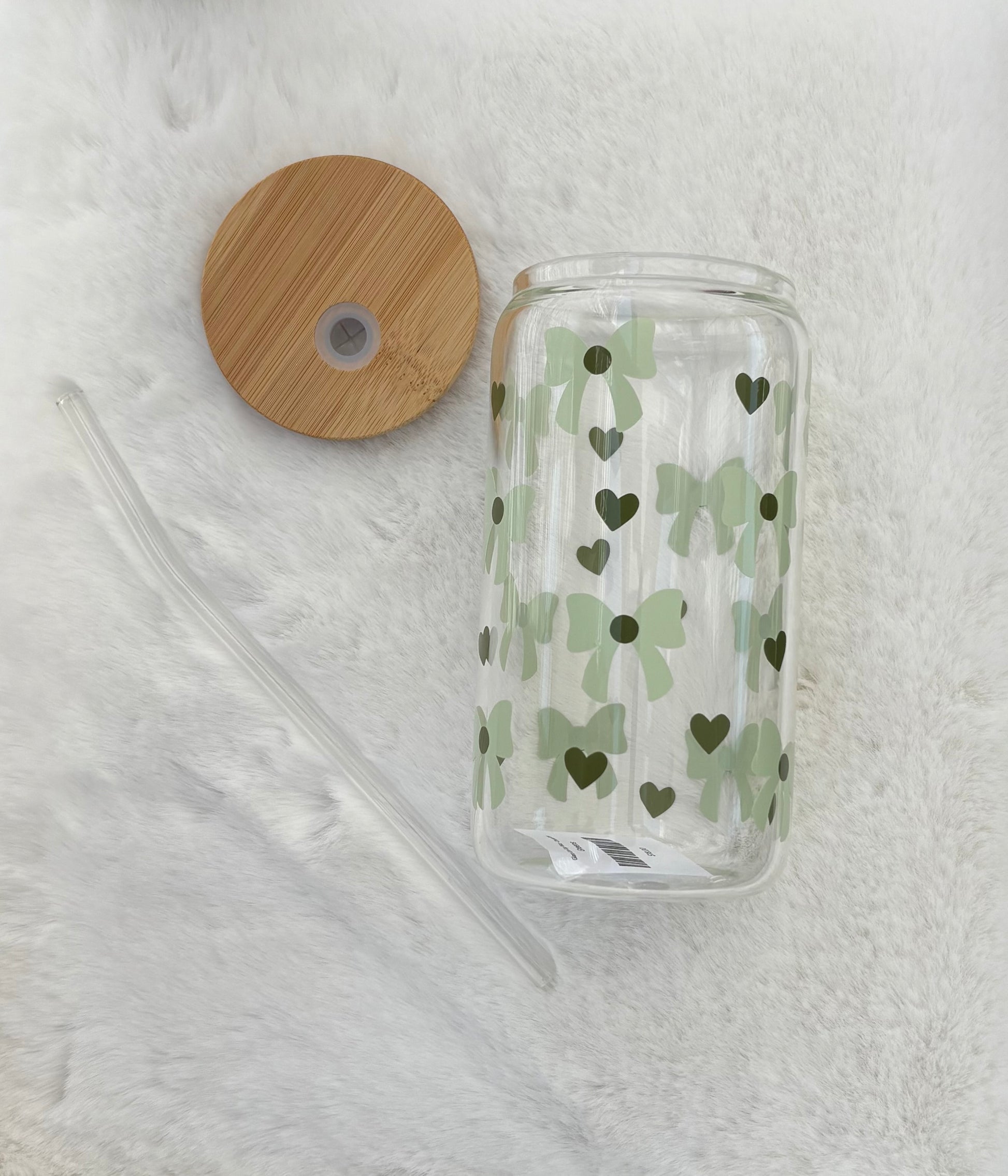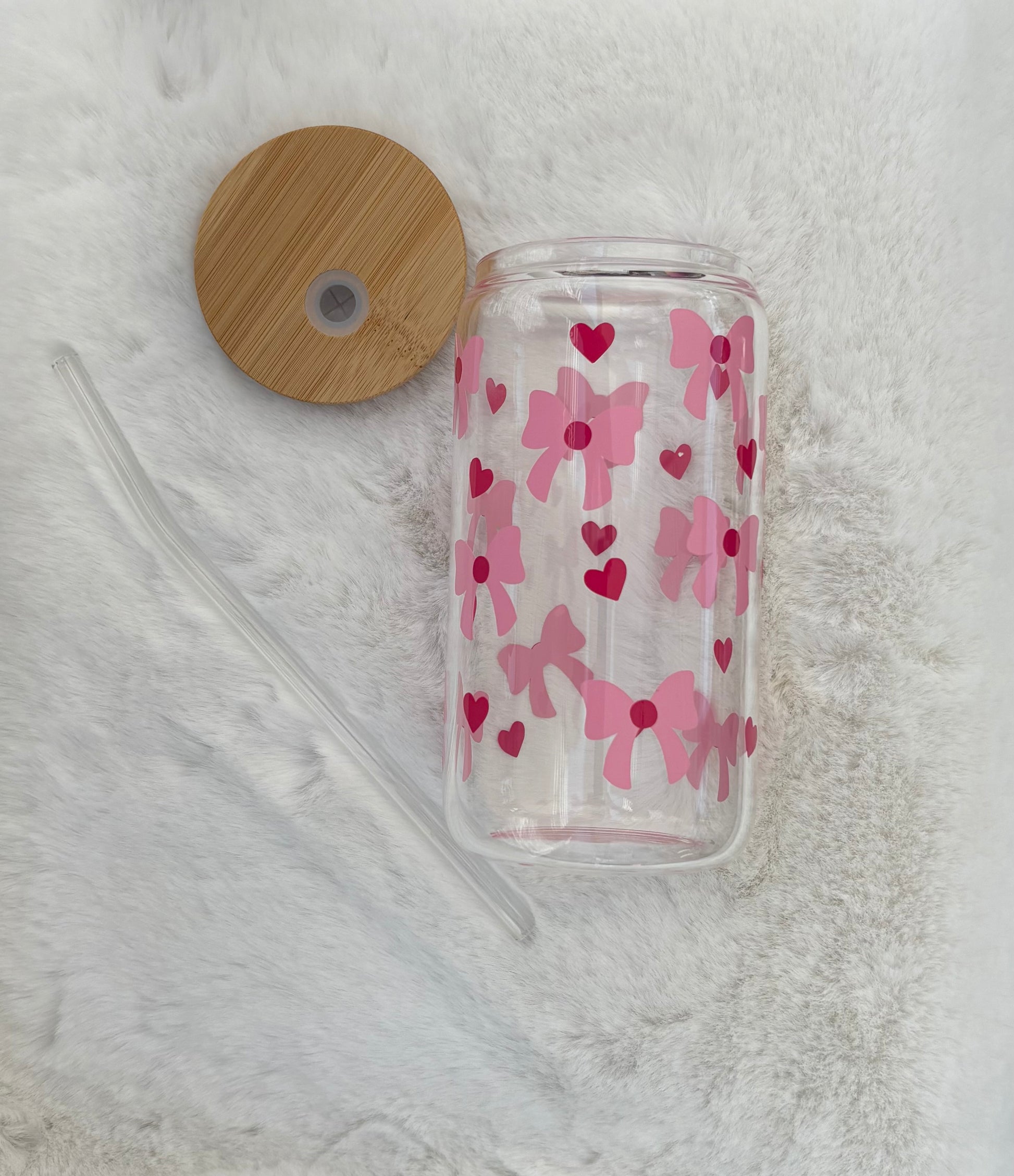 Glass Can Cup 16oz - Chunky Bows