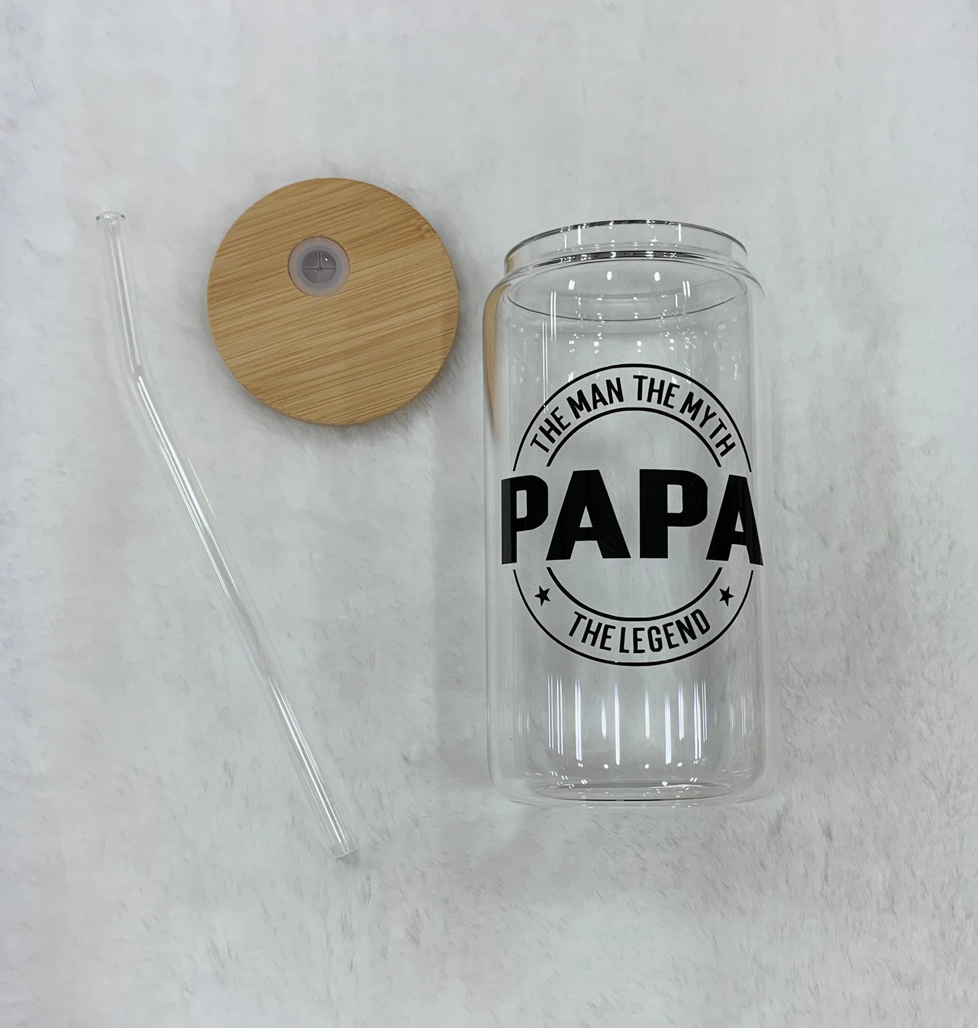 Glass Can Cup 16oz - PAPA (Man/Myth/Legend)