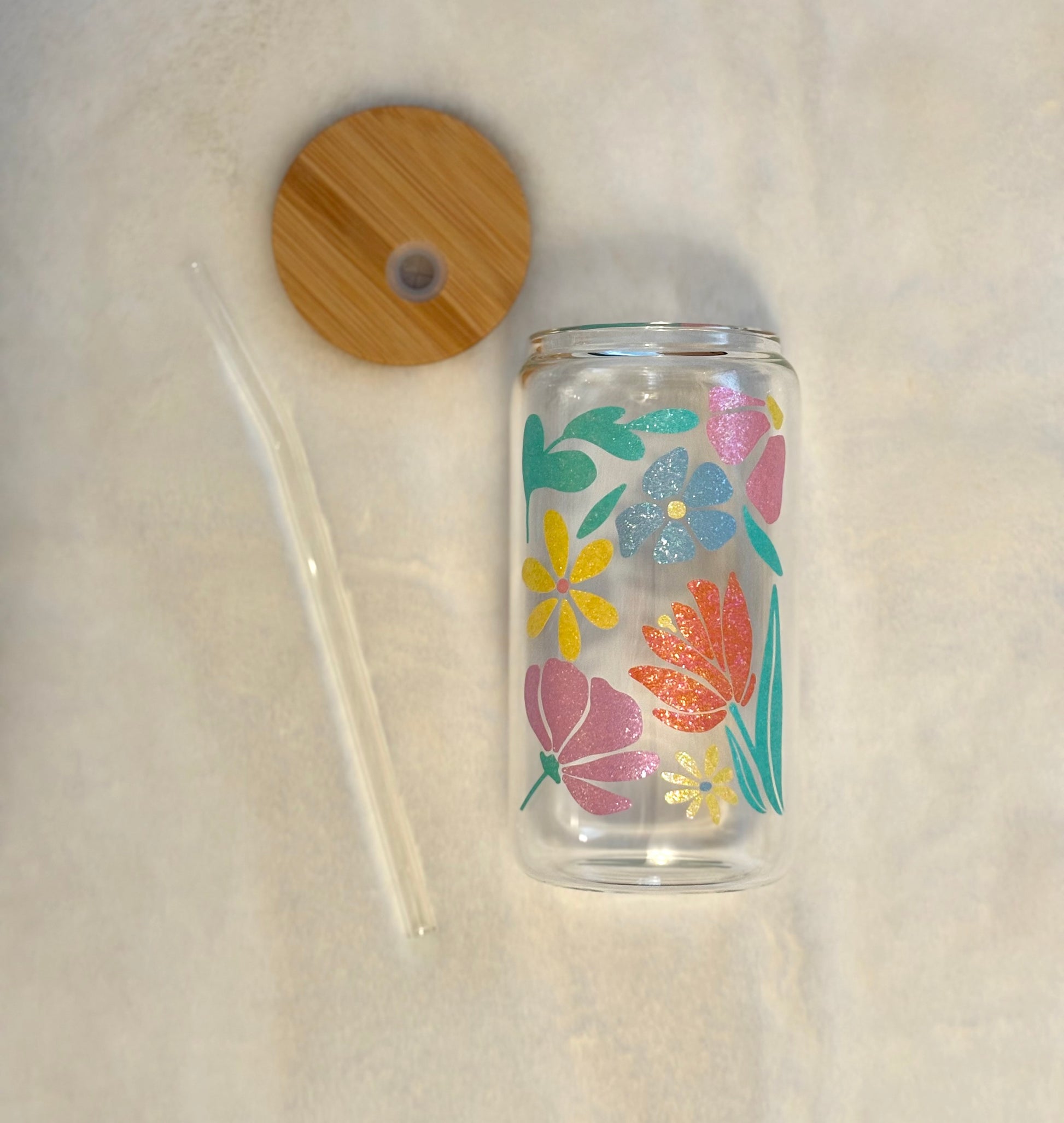 This stylish 16oz glass can cup is the perfect companion for your favourite beverage. Featuring a glass straw and bamboo lid, this high quality cup will make sipping drinks a breeze!