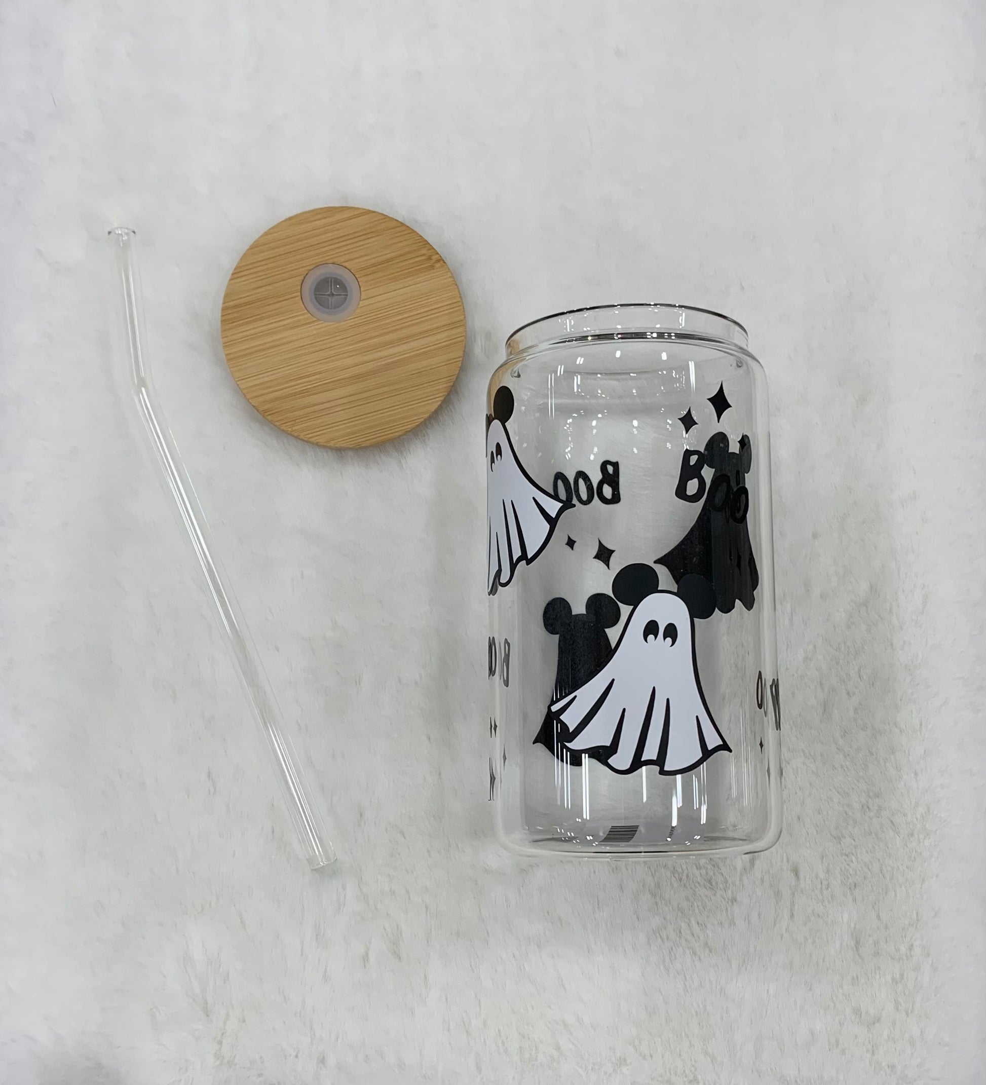 This stylish 16oz glass can cup is the perfect companion for your favourite beverage. Featuring a glass straw and bamboo lid, this high quality cup will make sipping drinks a breeze!