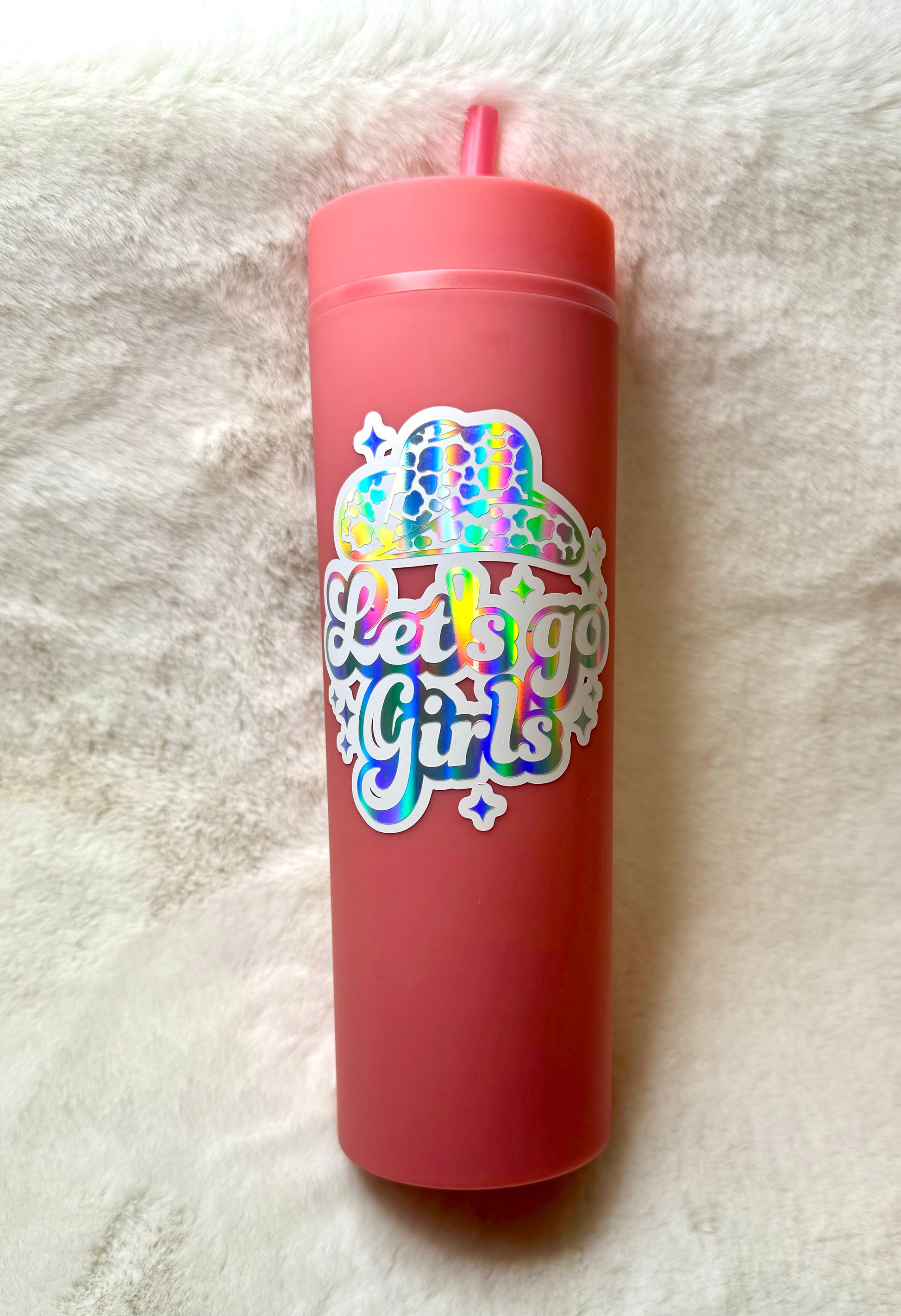 High quality coloured tumblers are the perfect addition to your cold or hot drink cup needs! Each cup has a 16oz drink capacity, and includes a durable straw with a locking ring to prevent straw from falling out/loss. Decals are done with the highest-quality adhesive vinyl. Hand wash only; do not soak. Cold drinks only.