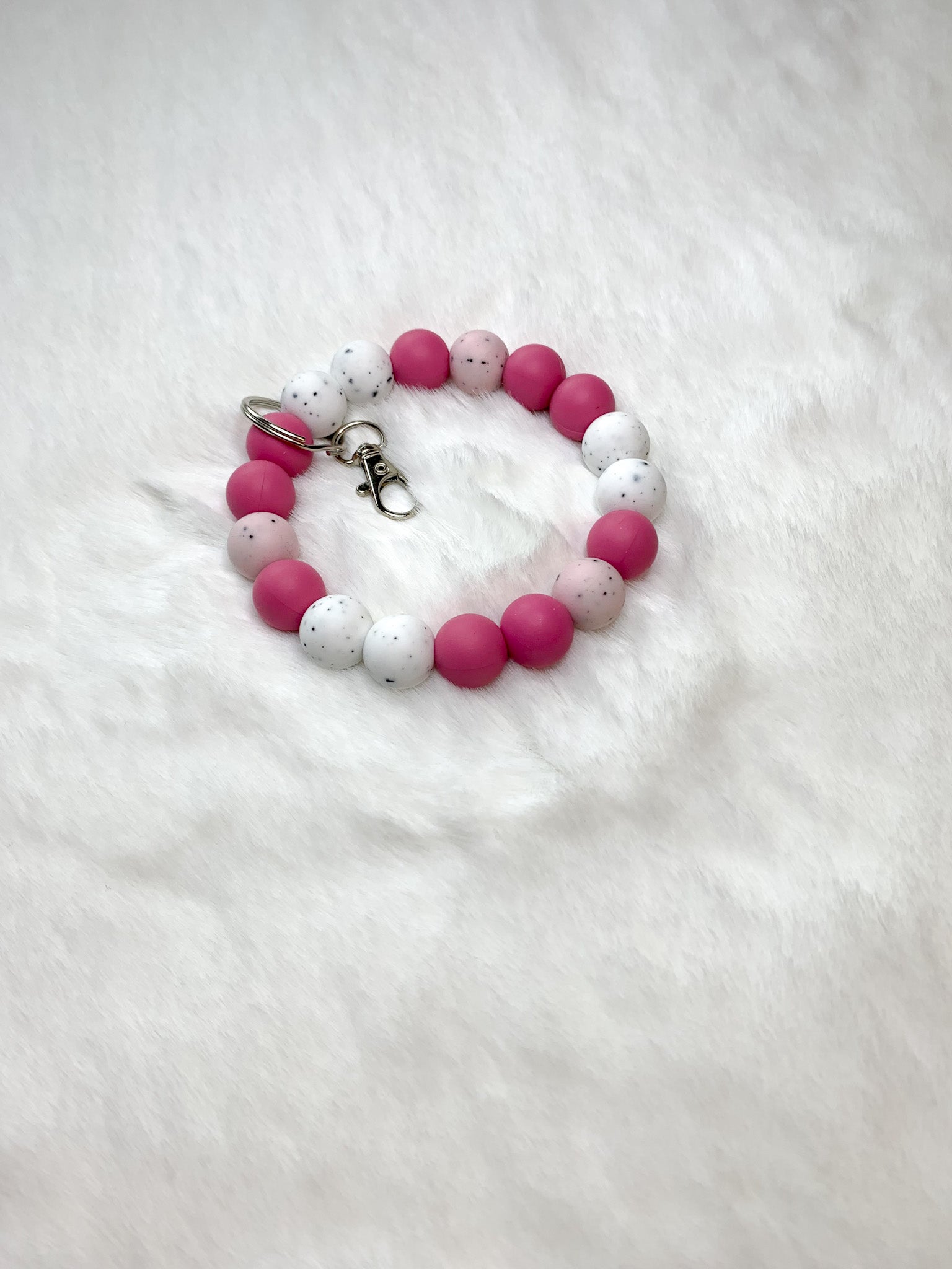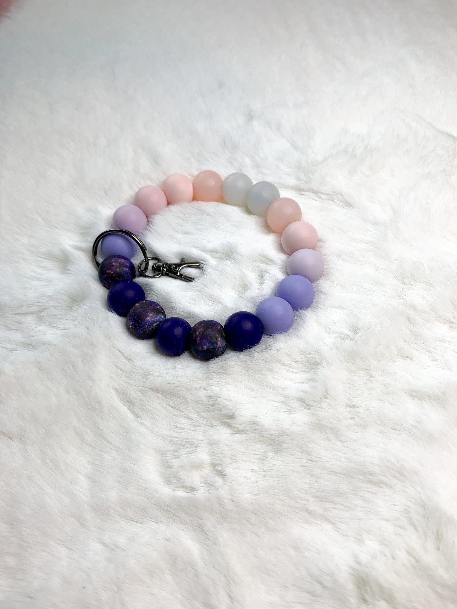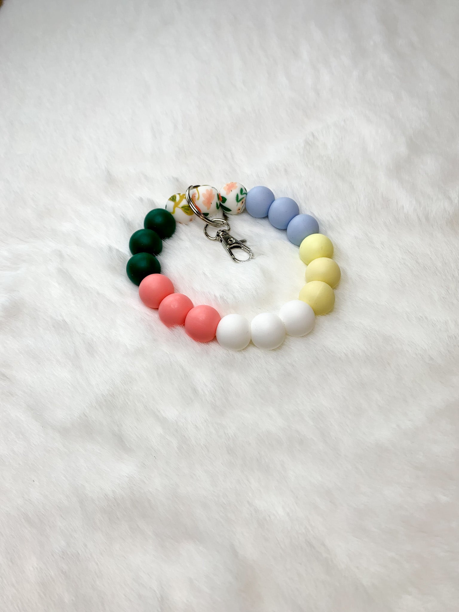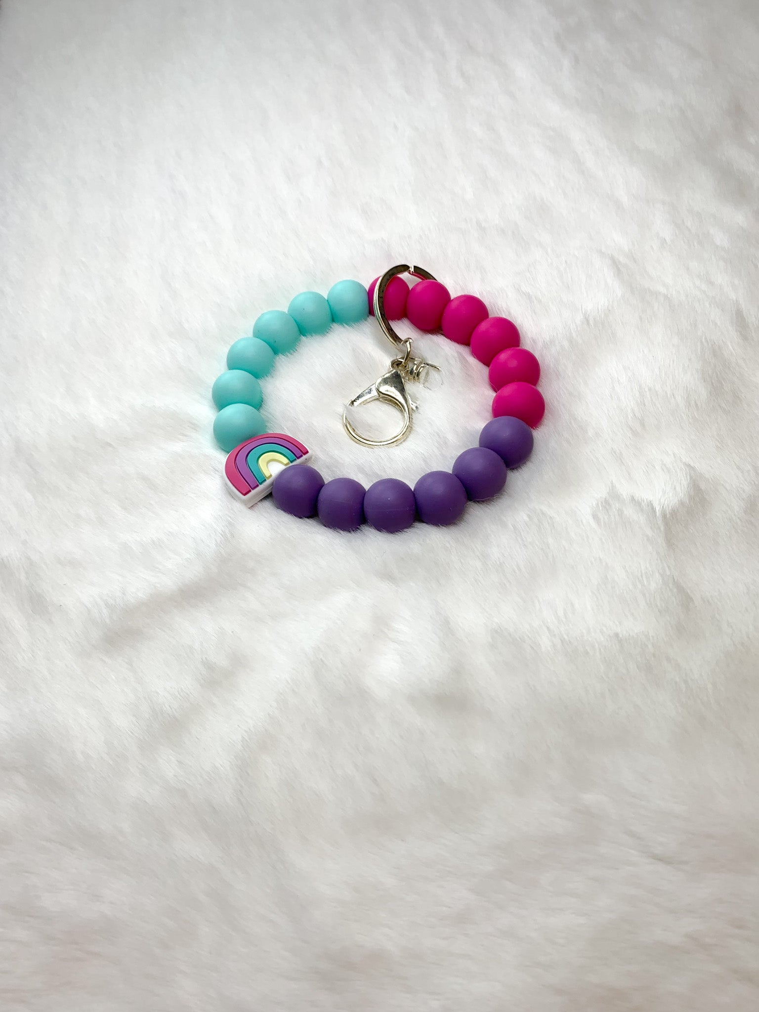 Beaded silicone wristlet keychains in a variety of beautiful colours and designs! Each one is carefully handmade.The perfect on-the-go accessory. Easily keep track of your keys while carrying groceries or out & about! Wristlets are not stretchy, keep a tight circle formation, and easily roll onto your wrist.